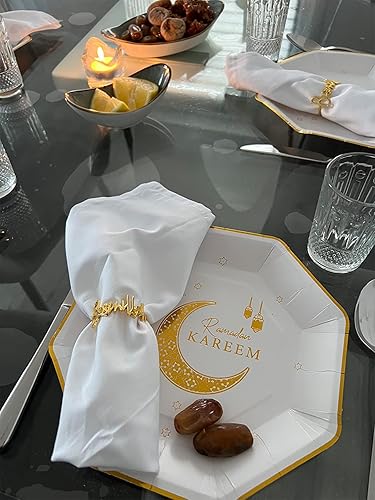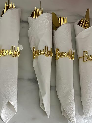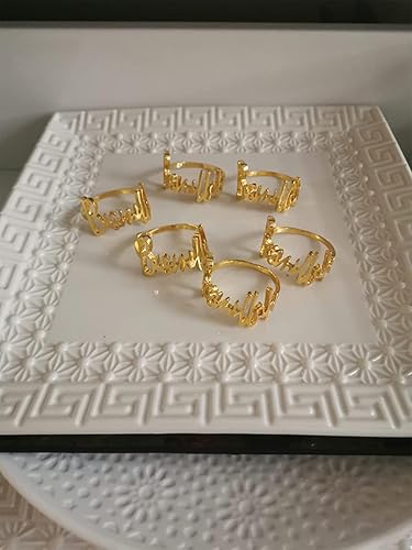 Ronds de Serviette en métal, Lot de 12 Ronds de Serviette en métal doré Bismillah avec Lettres de l'alphabet et Boucles de Serviette pour Mariage, fête, Noël, Thanksgiving
