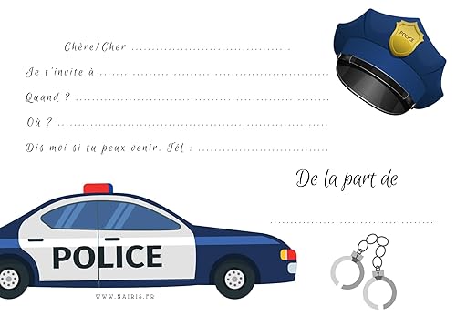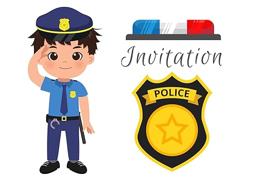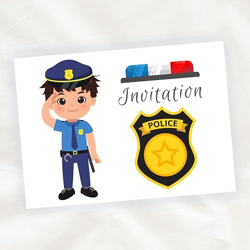Cartes Invitation Policier - Pack de 8 | Anniversaire, Baby Shower, Baptême | Illustrations Aquarelles, Personnalisables