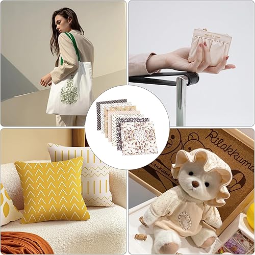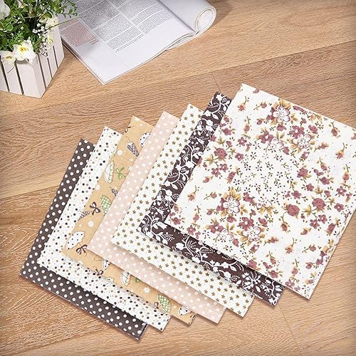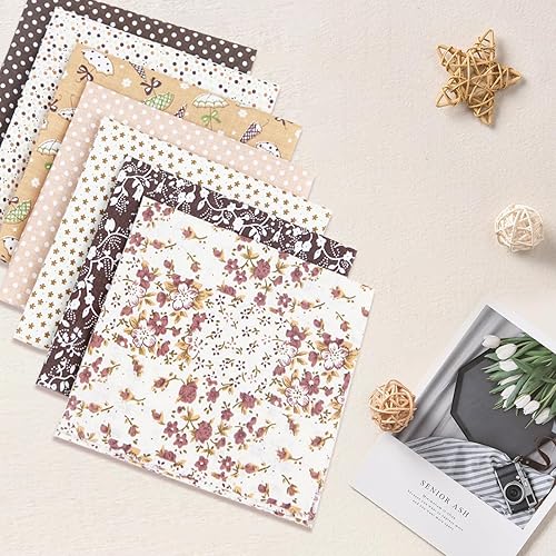 Lot de 7 carrés de tissu à coudre en coton 50 x 50 cm - Couleur café - Motif floral - 100 % coton - Pour matelassage, scrapbooking, couture, patchwork, arts et travaux manuels, projets de bricolage