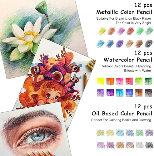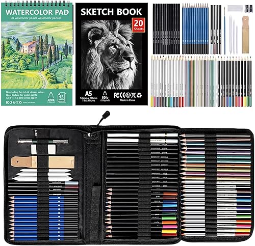 UCAMP Ensemble de matériel de dessin et de croquis 76 - Crayons de Dessin Professionnels - Fournitures avec carnet de croquis et papier aquarelle, Malette Dessin pour Artiste Débutant Adulte