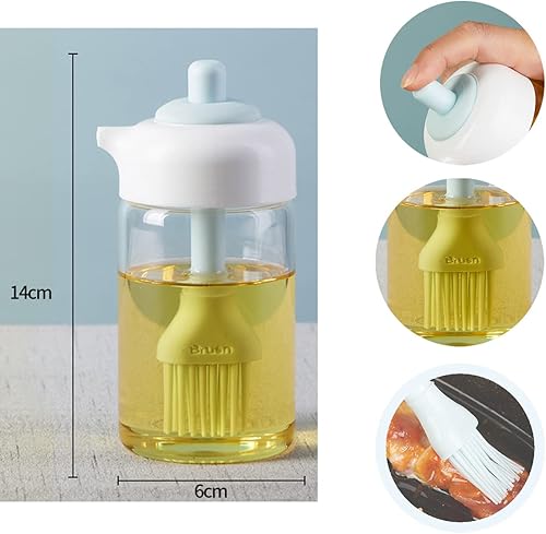 Distributeur D'huile d'olive, Pinceau Bouteille D'huile de 230 ml, l'huile Bouteille pour Barbecue Cuisson, bouteille de distribution d'huile d'olive en verre avec brosse en silicone, pour cuisine