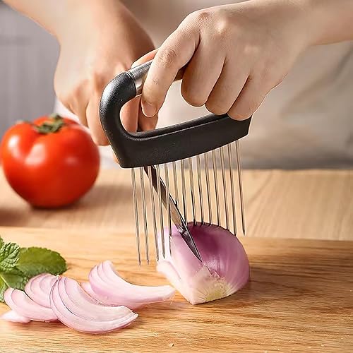 Porte Tranche Oignons,Tranche Oignon Support à Oignons Amélioré Trancher Les Outil de Cuisine Multifonction pour Couper Légumes Fruits Tomates Citrons