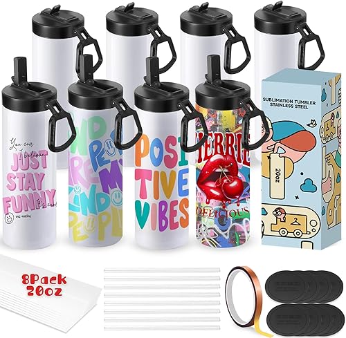 Cafultgo Lot de gobelets à sublimation vierges pour bouteille d'eau 20 OZ Blanc droit en acier inoxydable pour gobelet à presse à chaud, machine d'impression par sublimation (4pcs)