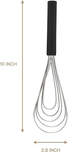 Jell-Cell Fouet Plat Avec Manche en Silicone Antidérapant 25,4 cm - 5 Fils Avec 10 Têtes Pour la Cuisine (Noir)
