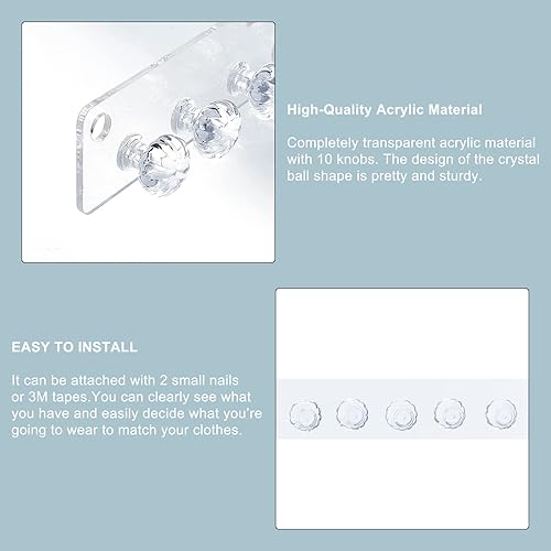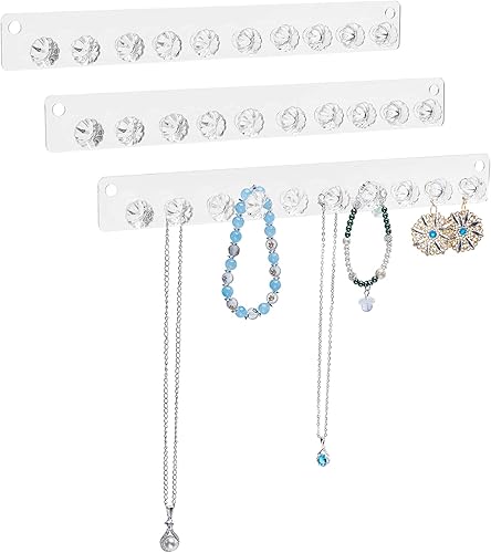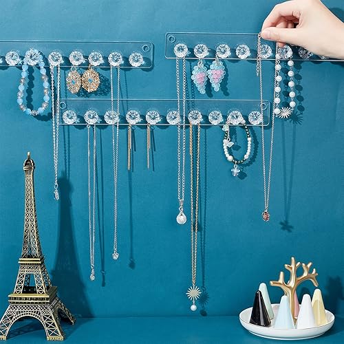 PH PandaHall Collier Cintre, 3pcs Organiseurs de Bijoux avec 10 Porte-Colliers en Diamant Crochets de Rangement Muraux en Acrylique pour Femme Boucles d'oreilles Bracelets Cheville Clé, 30x3.5cm
