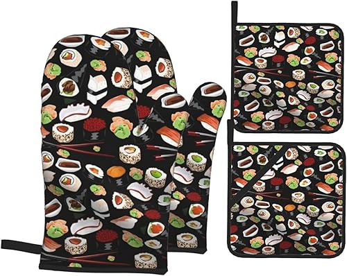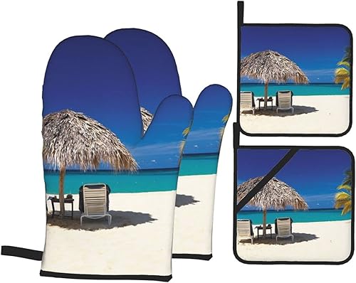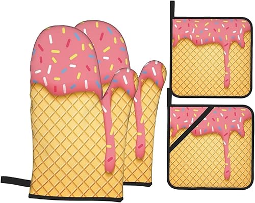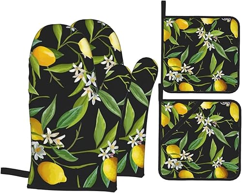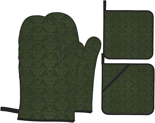DCARSETCV Hunter Lot de 4 maniques et maniques résistantes à la chaleur Motif pétales floraux Vert