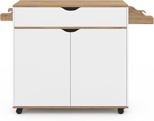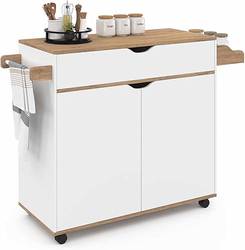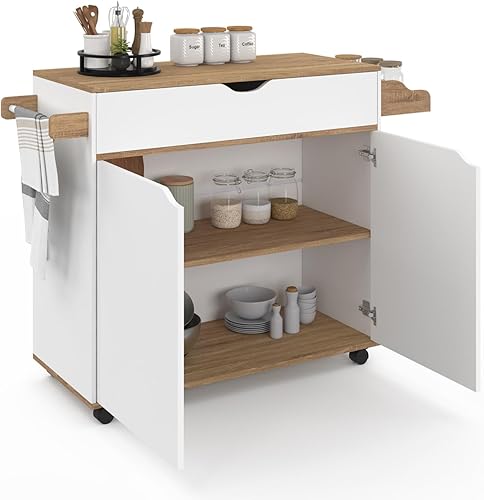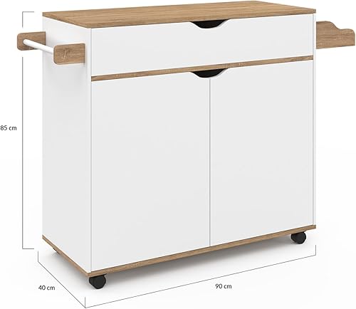 IDMarket - Desserte de cuisine COSY XXL placard avec tiroir blanc et plateaux façon hêtre L.90 CM