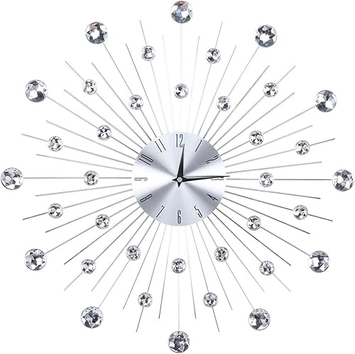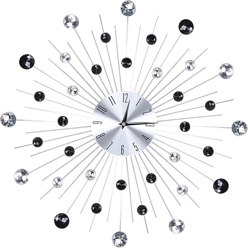 Gavigain Horloge Murale étincelante, Horloge Murale en Cristal 3D Moderne, Horloge Murale Argentée Métallisée étincelante pour Cuisine, Salon, Chambre à Coucher, Miroir Argenté Horloge Diamant(Noir)