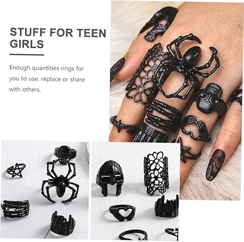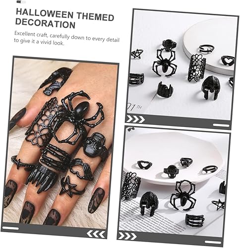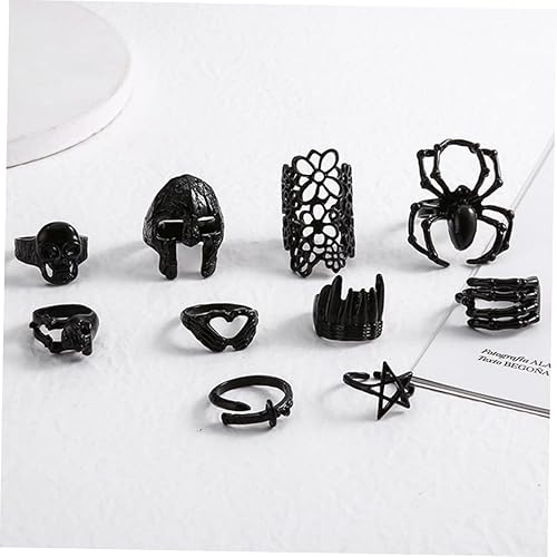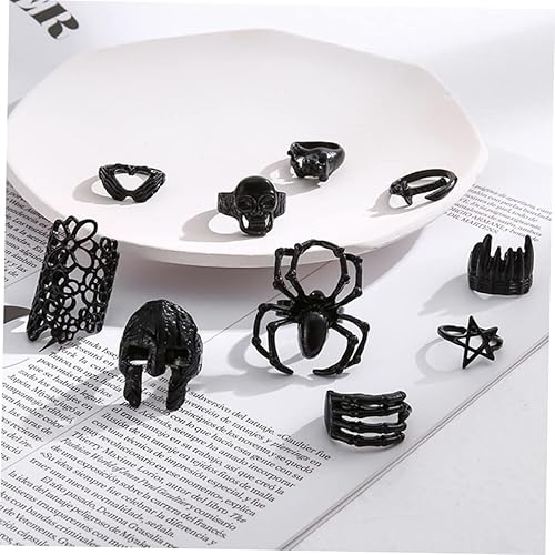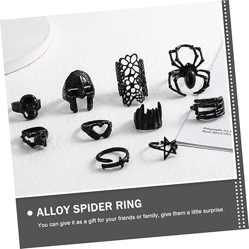 COLLBATH 10 Pièces Bague D'halloween Fête D'halloween Décoration De Bagues Pour Femmes En Sterling Bague Araignée Squelette Bagues Tête De Mort Pour Hommes Alliage Black