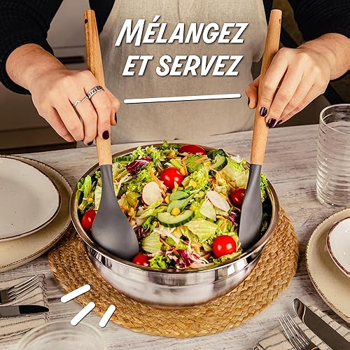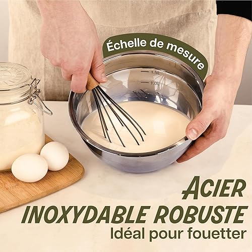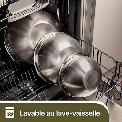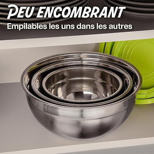 Praknu 3 Saladiers Inox Avec Couvercle - Bol Cuisine En Inox - Hermétiques, Empilables - Idéal pour Mélanger, Transporter et Conserver