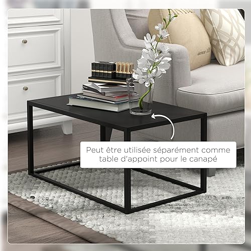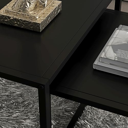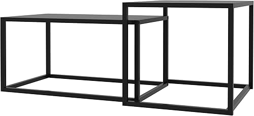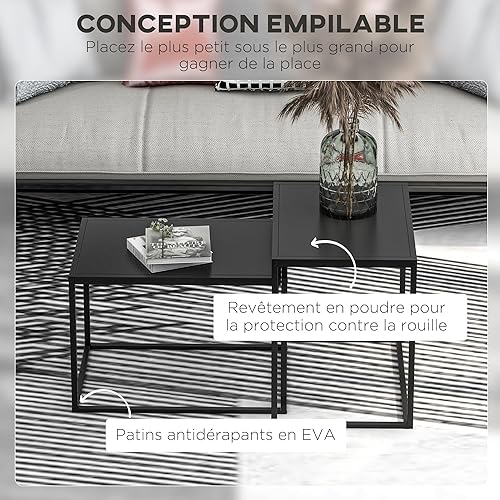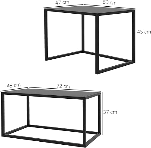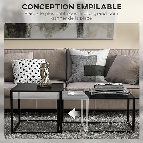 HOMCOM Lot de 2 Tables Basses gigognes, Lot de 2 Tables gigognes de Salon, modulables, en Acier, Style Industriel, Noir Mat