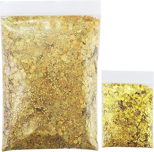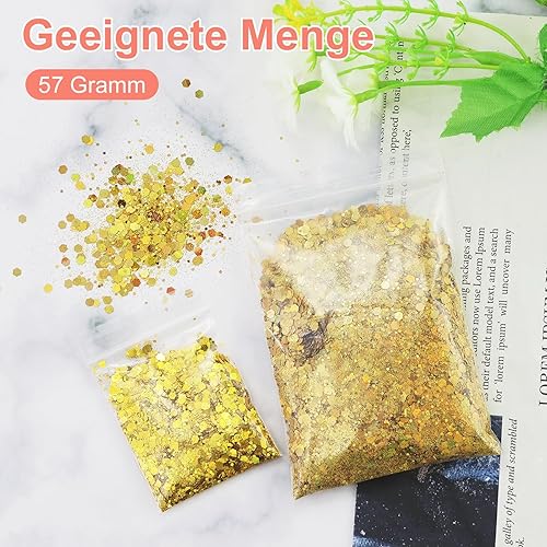 57g Hexagonal Gold Glitter, paillettes remplies, particules de paillettes brillantes, poudre de paillettes pour les ongles, pour le bricolage, la décoration de fête, les vêtements, l'artisanat.