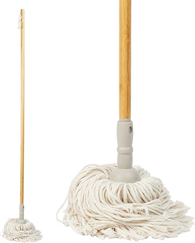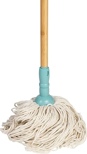 Salter Balai à Franges en Coton, Balai Serpillère avec Tête Supplémentaire, Balai à Frange Super Absorbantes, Avec Manche en Bois, Utilisable à Sec ou Humide, Bleu/Bois, LASAL71465WEU7
