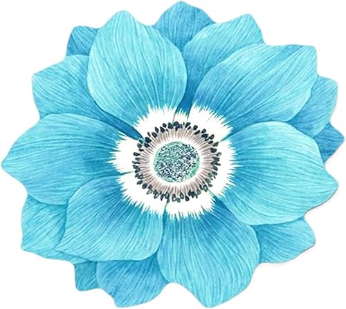 CRYSTAL PILE RUG Tapis rond antidérapant pour salon, chambre à coucher, dressing, en polyester lavable, motif lotus, style bohème (40 à 160 cm, 10 couleurs) (bleu grisâtre, 60 x 60 cm)