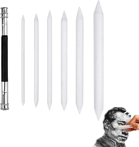 6 Pièces Estompeur Dessin, Stylos Mélangeurs, Estompe en Papier Dessin, Estompe en Papier Dessin, Stylos Mélangeurs, avec 1pc Réglable Rallonges de Crayon, pour Artistes Étudiants