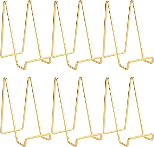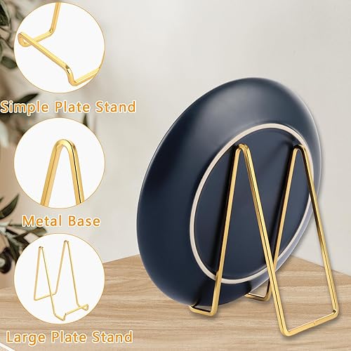 YAYODS Lot de 6 supports d'assiettes en métal de 14 cm - Dorés - Support décoratif pour assiettes - Pour photos, livres, images