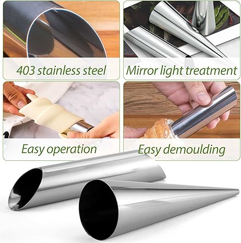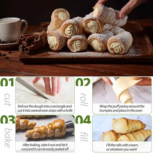 GTDOOCE Cornet Patisserie,20 Pièces Cannoli,Tubes Cannoli Moules,Moules à Cornets e Tubes en Acier Inoxydable avec Brosse de Nettoyage pour Cannoli Rouleau à la Croissant Feuilletés