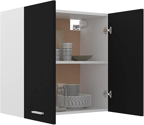 Toshilian Meuble Haut de Cuisine, Armoire de Cuisine Murale élément Haut Armoire Suspendue Noir 60x31x60 cm Aggloméré