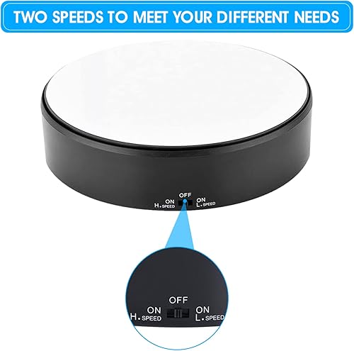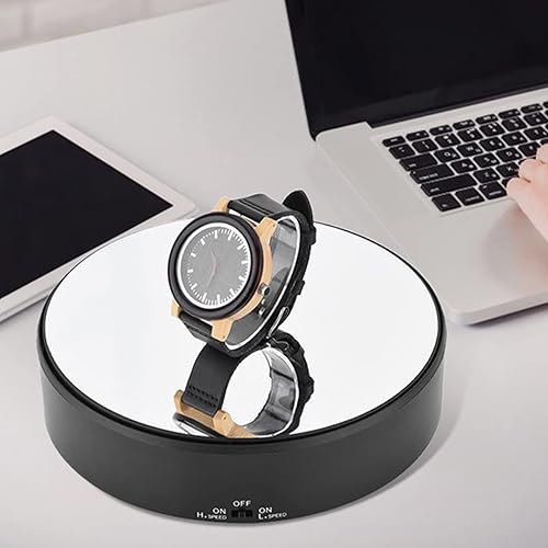 Plateau Tournant Electrique, Présentoir Rotatif à 360° du Miroir Diamètre 18cm Vitesse de Rotation Réglable pour Présentation de Bijoux Montres Produits Numériques