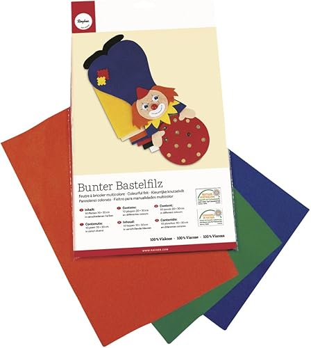 Rayher 5300749 bricolage de feutre 0 8 1 mm 20 x 30 cm 10 couleurs sort. SB Blister de 1set Mélange