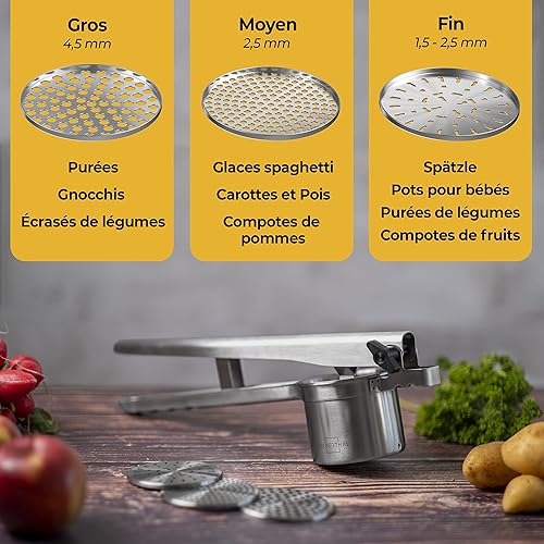 SILBERTHAL Presse-Purée Manuel Inox - 3 Disques - Facile Et Rapide - Idéal Purée Et Compote