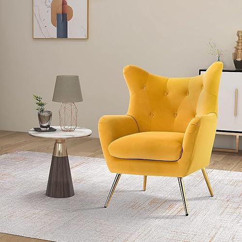 HULALA HOME Fauteuil en Velours,Chaise Coiffeuse Rembourrée Confortable,Fauteuil Coiffeuse avec Pieds en Métal Doré,Fauteuil Salon avec Grand Dossier pour Salle à Manger,Chambre,Salon,Orange