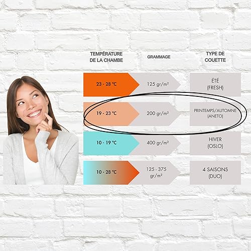 NORA HOME Couette Tempérée 150x200 cm Lit 1 Personne. Anti-acariens. Antibactérienne. Douce. Légère. Fibre 3D 200 g/m² pour Toute l'Année. Édredon Printemps Été Automne Hiver - ANETO