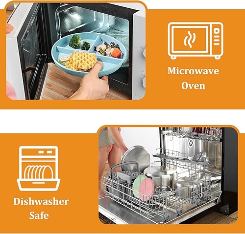 Oenothera 4 Pièce Assiette Compartiment Adulte, Assiettes Divisées, Assiette Plastique Reutilisable, pour le four à micro-ondes et le lave-vaisselle(22cm)