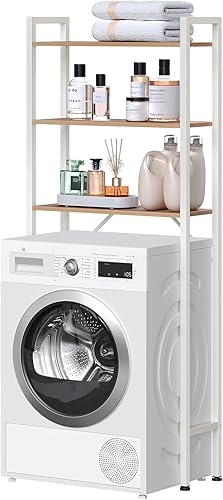 EUGAD Meuble WC, Meuble Dessus Machine à Laver, à 3 Niveaux, Gain d'Espace, Chêne Clair + Blanc, 67x20x164cm