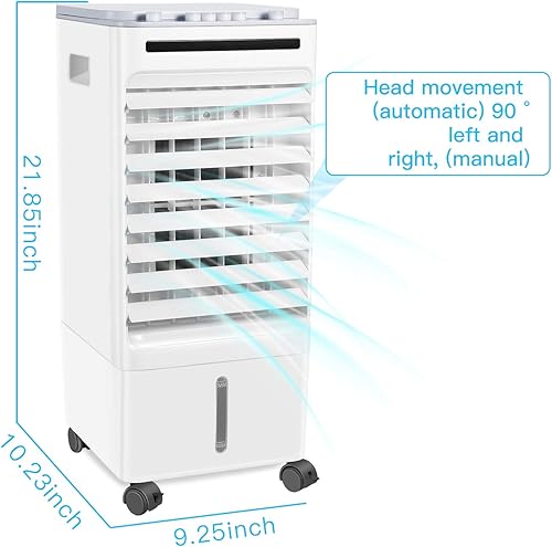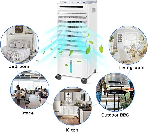 SONBION Climatiseur Mobile, Refroidisseur D'Air éVaporatif Silencieux, 4 en 1 Climatiseur Portable Ventilateur Humidificateur Purificateur D'Air pour Maison Bureau, RéServoir D'Eau 5l, 3 Wind Speeds