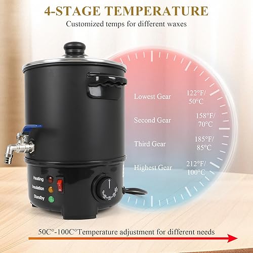 LIROPAU Fondeur de Cire pour la Fabrication de Bougies, 4L Fondoir à Cire Électrique, Pot de Fusion Savon Bougie Électrique Grande Capacité Pot, Kit de Fabrication de Savo DIY avec Bec Verseur