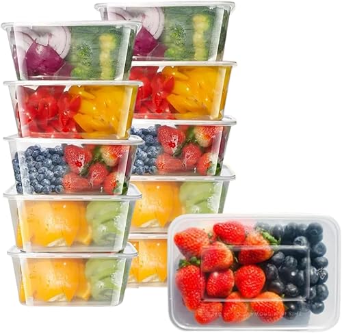 Lot de 10 boîtes de conservation hermétiques de 1 L avec couvercles à clipser – Boîtes étanches et réutilisables pour la préparation des repas – Passent au micro-ondes, au congélateur et au