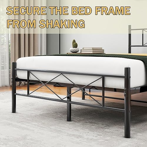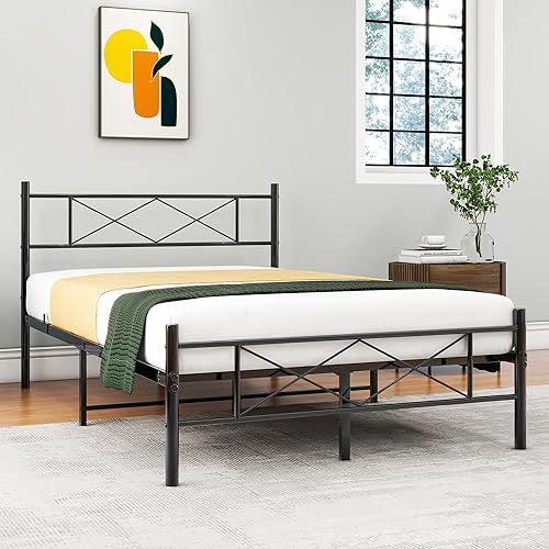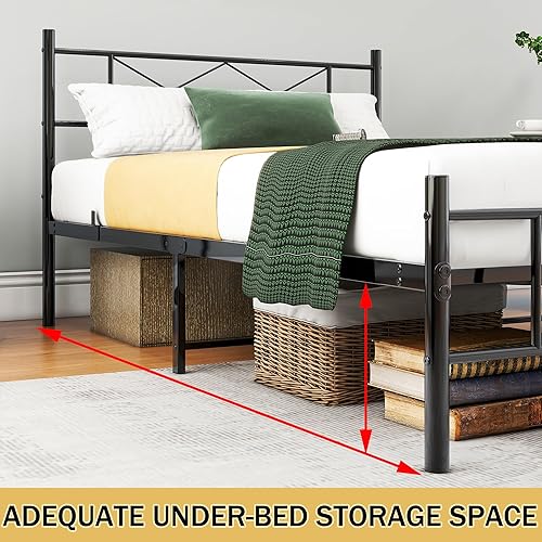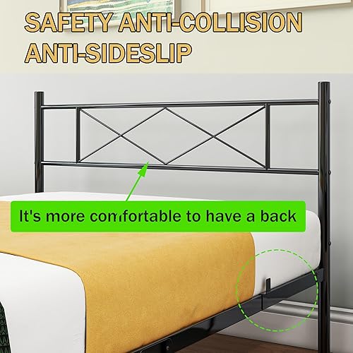 VERFARM Lit simple en métal, avec sommier à lattes, avec tête de lit, lit simple, 120 x 200 cm, noir