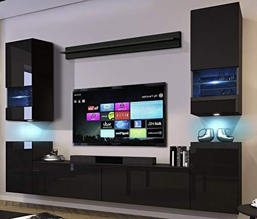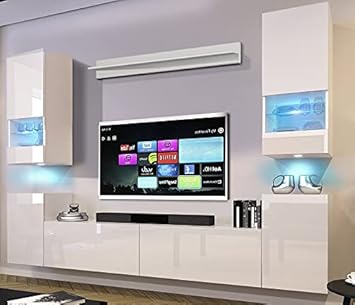 Furnitech Ensemble Meuble TV Mural Suspendu Salon – Meuble Salon Design Moderne avec colonnes, vitrines et rangements – Mobilier sans éclairage LED (Future 68/HG/W/2 1B)