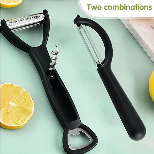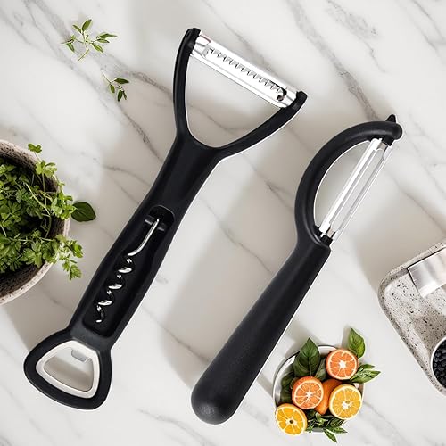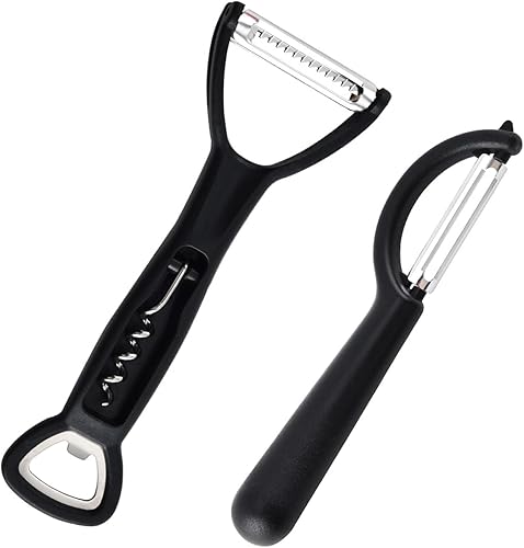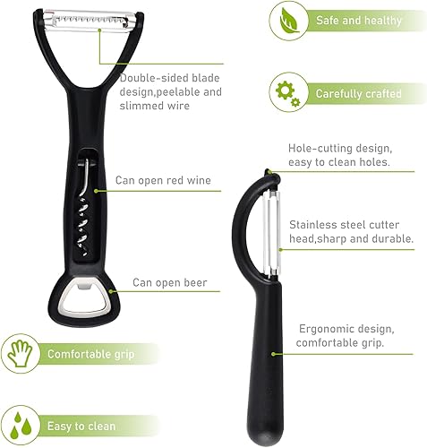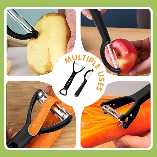 Éplucheur, Lot de 2 Éplucheurs Universels en Acier Inoxydable - Poignée Ergonomique, Lame Tranchante pour les Fruits et Légumes, 3 en 1, Design Pratique, Adapté à la Cuisine de Tous les Jours