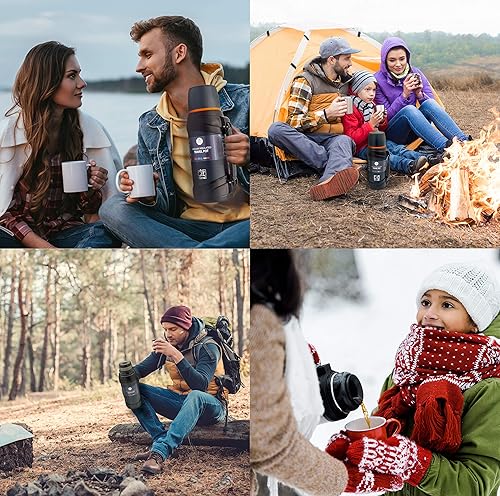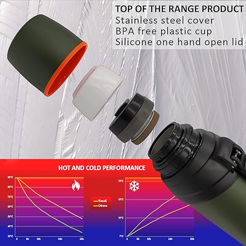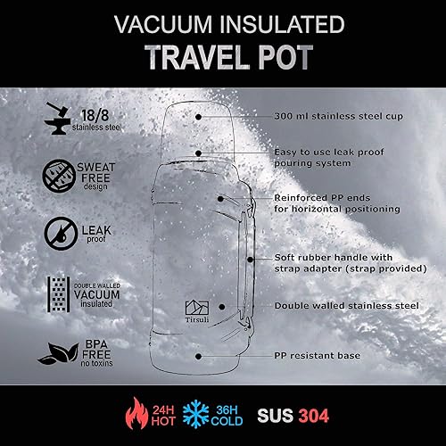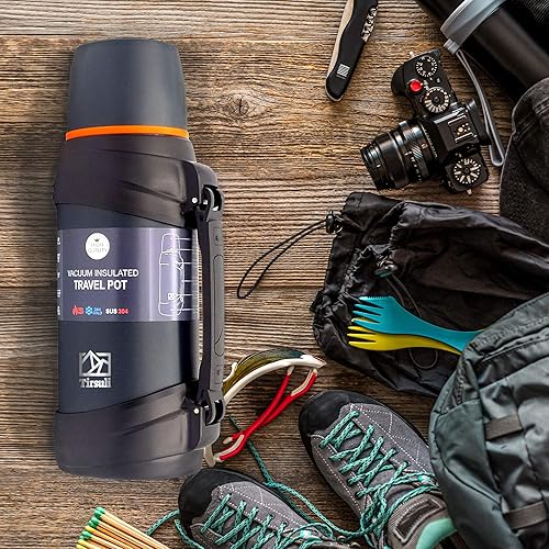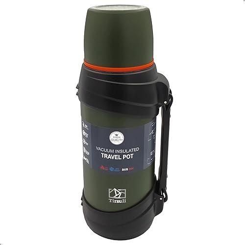 Tirsuli Bouteille thermos isotherme de voyage 2 Litres à double paroi en acier inoxydable - Chaud/froid plus de 24 heures - eau, café, lait ou thé (bleu)