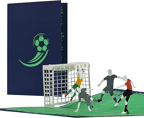 Carte anniversaire garcon spécial football. Carte 3D pop up pour souhaiter un anniversaire à un fan de foot ou pour utiliser comme carte d'invitation, peut accompagner un bon cadeau d'anniversaire.