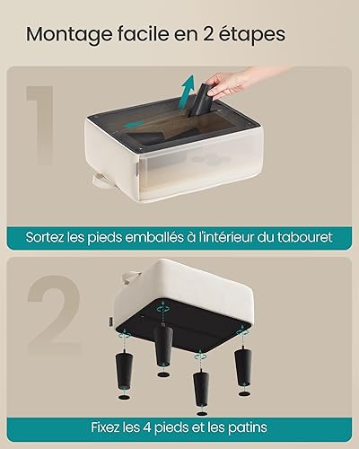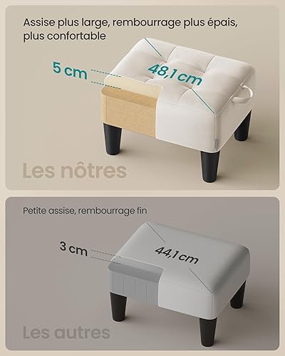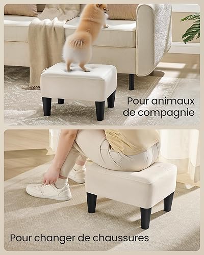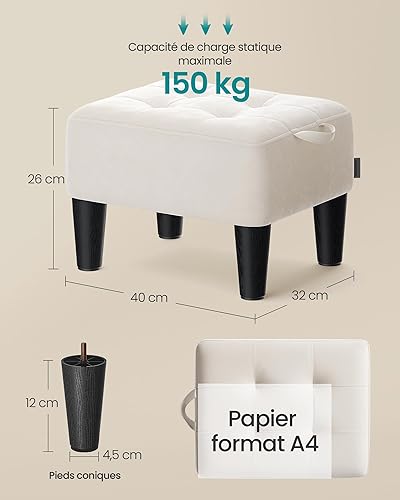 SONGMICS Tabouret, Repose-Pieds, en Tissu Façon Lin, Pouf, Rembourrage Épais, Capacité de Charge 150 kg, pour Salon, Chambre, Entrée, Noir d’Encre LOM502B01