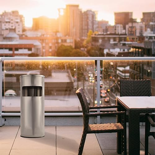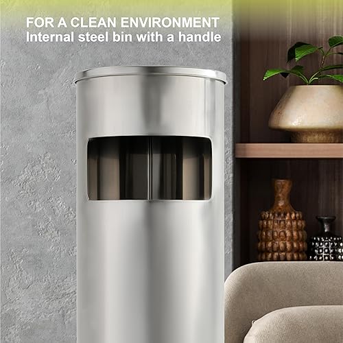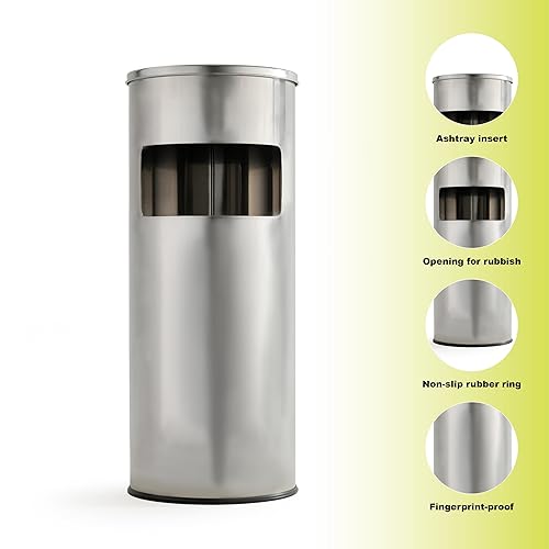 OKKO | Poubelle 17L | Design Moderne Poubelle | Poubelle sur Pied Extérieur, Interieur | Taille Optimale, Deux Fonctions | La Poubelle Extérieure en Acier Inoxydable | Argent, Noir
