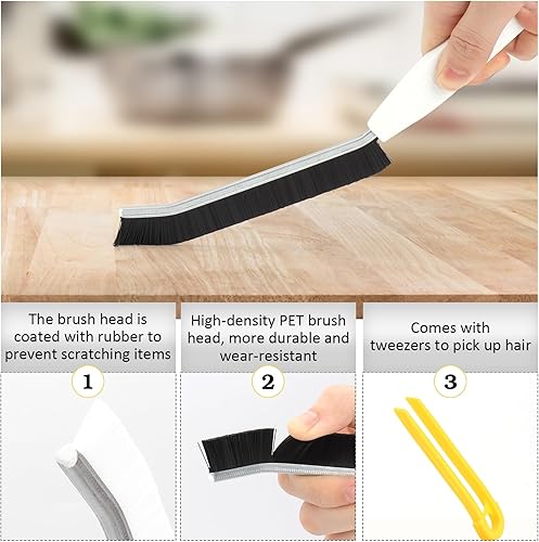 2 brosses de Nettoyage pour espaces colorées,Brosse à Poils durs pour Nettoyer Les Interstices,Pince à épiler pour ramasser Les Cheveux,Brosse multifonctionnelle pour Salle de Bains,Cuisine,carrelage