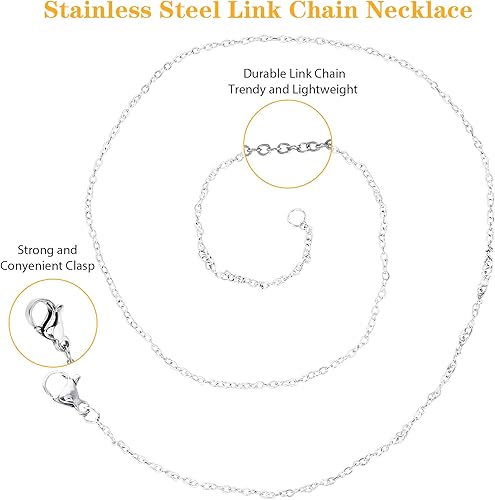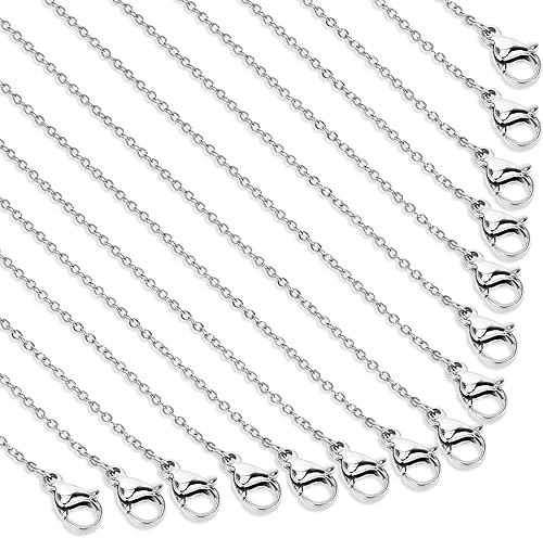 Lot de 30 chaînes de collier avec fermoirs mousquetons pour la fabrication de bijoux, chaînes en acier inoxydable en vrac, chaînes fines de 1,2 mm pour la fabrication de colliers, pendentifs