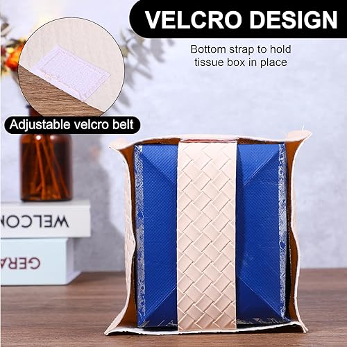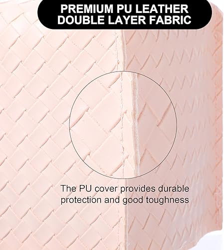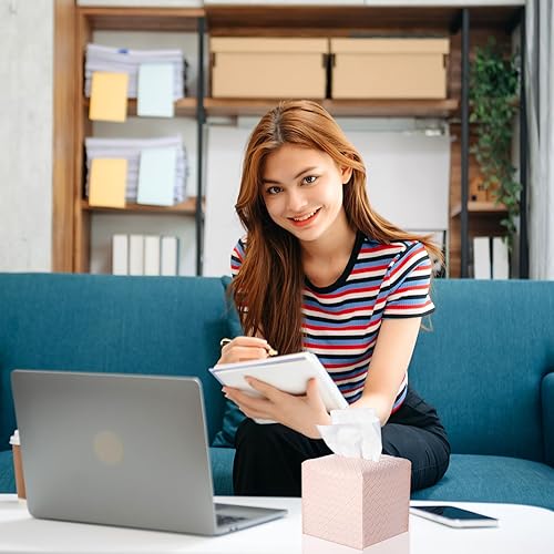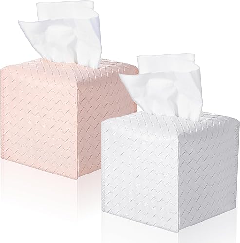 Prasacco Lot de 2 boîtes à mouchoirs en cuir synthétique - Carré tissé - Portable et pliable - Pour la maison, le bureau et la voiture - 12,7 x 12,7 x 12,7 cm (blanc + rose)