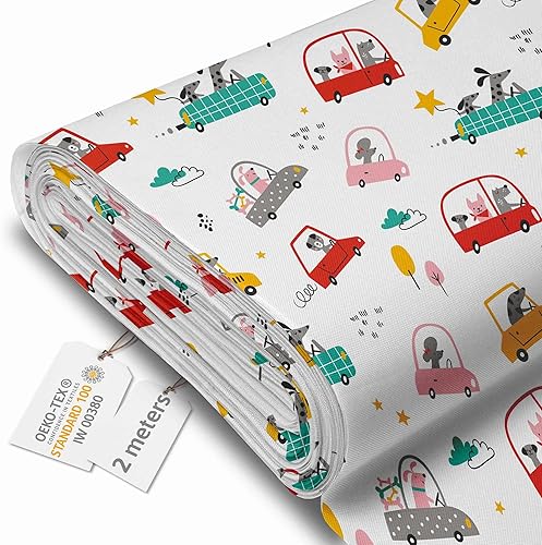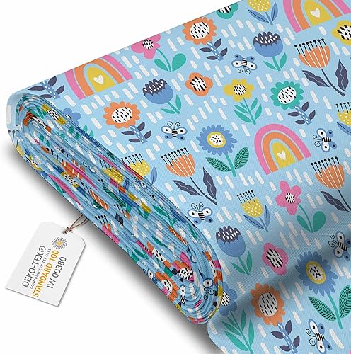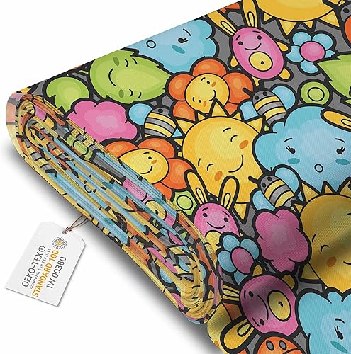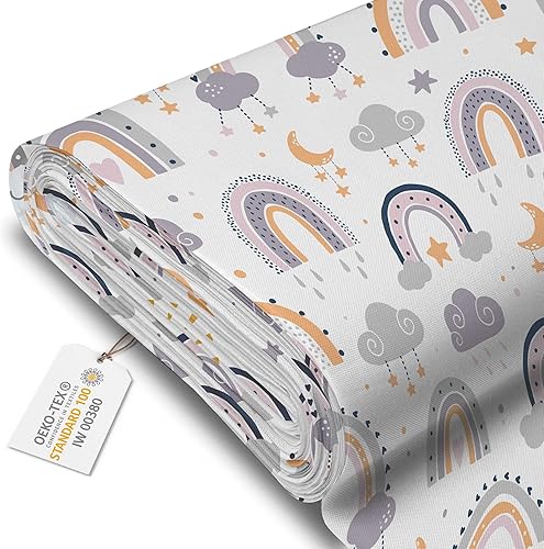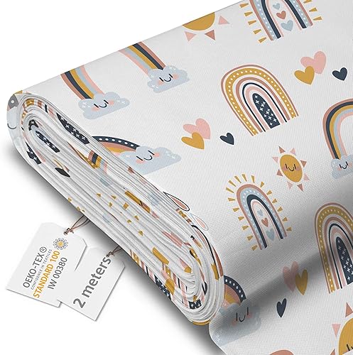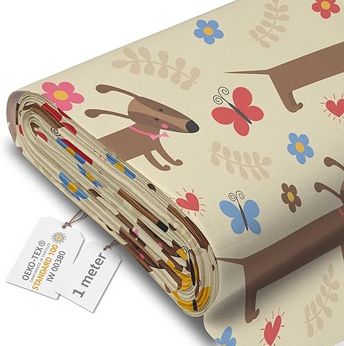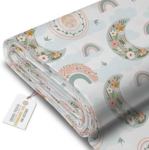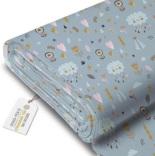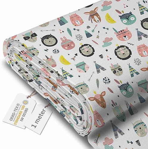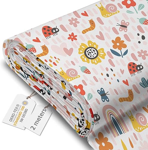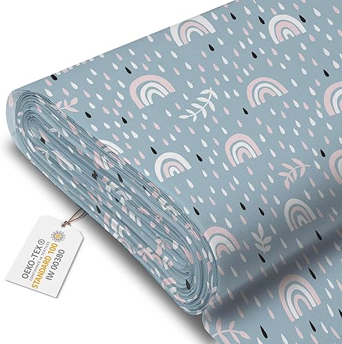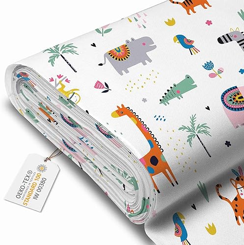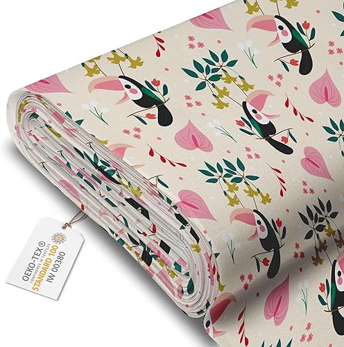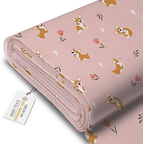 DreamRoots Tissu imperméable extérieur au metre 160 cm Largeur - Toile exterieure impermeable 100% de polyester 600D 220g/m - Tissus au metre ameublement Foxes Pastel 1M