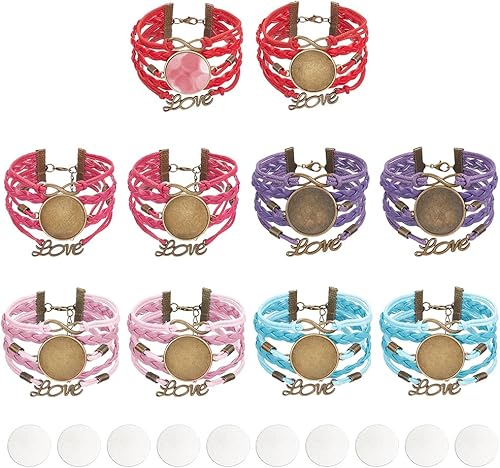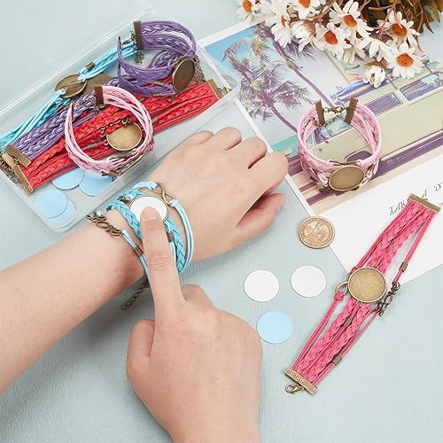 PH PandaHall Kits de Bracelets Vierges Par Sublimation, Bracelet à Transfert de Chaleur 10pcs 5 couleurs Bracelet Multi-Brins avec Cabochons en Aluminium de 25mm pour la Fabrication de Bracelets