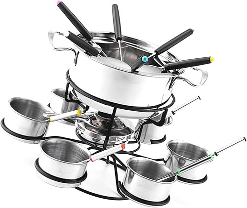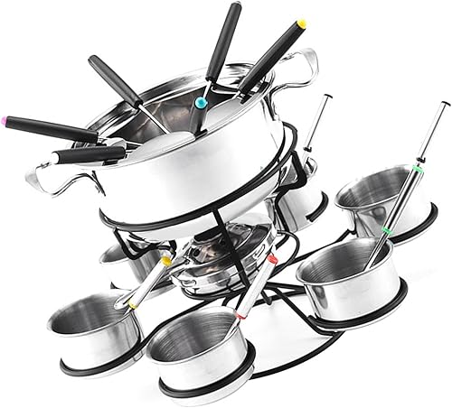 Ensemble De Caquelon À Fondue En Acier Inoxydable,Service À Fondue Au Fromage Rotatif 21 Pièces | Caquelon À Fondue Avec 6 Fourchettes, 6 Bols, Ensemble À Fondue Multifonctionnel, Ensemble De Cuisine