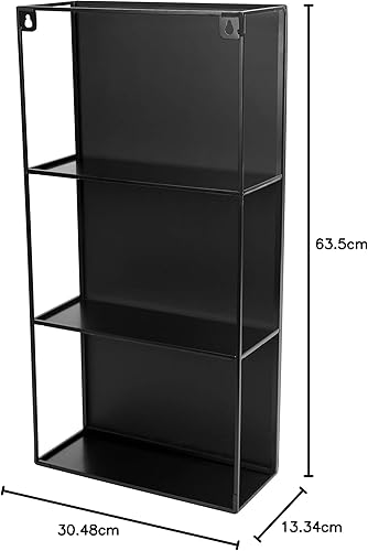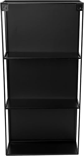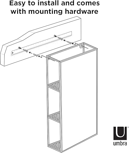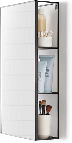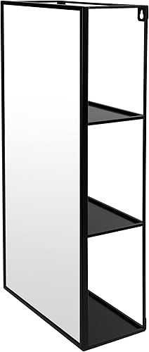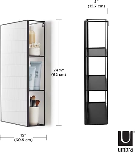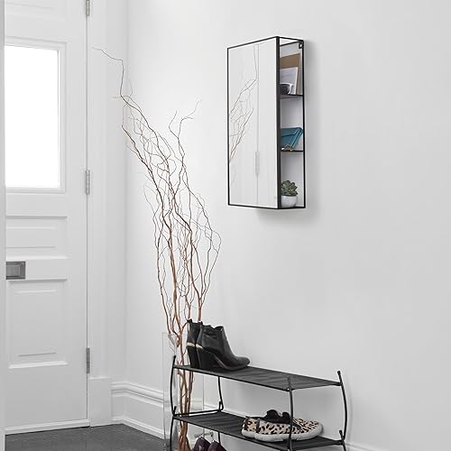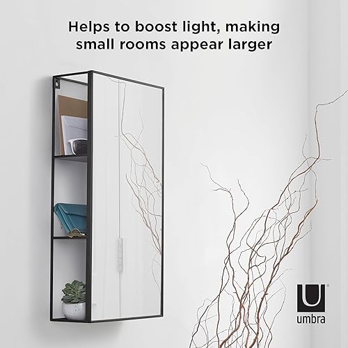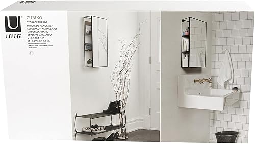 UMBRA Cubiko Mirror. Miroir et étagère de rangement en métal. Pour salle de bain ou entrée, idéal pour les petits logements. Coloris noir.