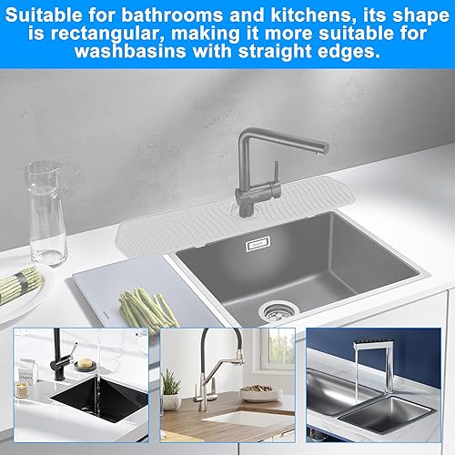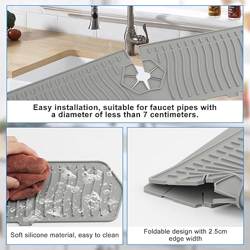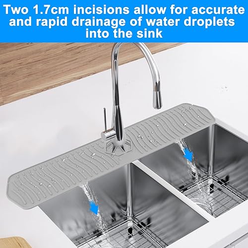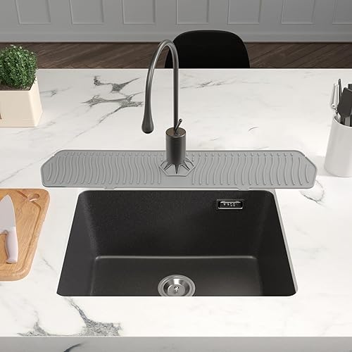 TEKONDA 1 tapis d'égouttement en silicone gris 61 x 14,5 cm - Protection anti-éclaboussures pour évier de cuisine et salle de bain