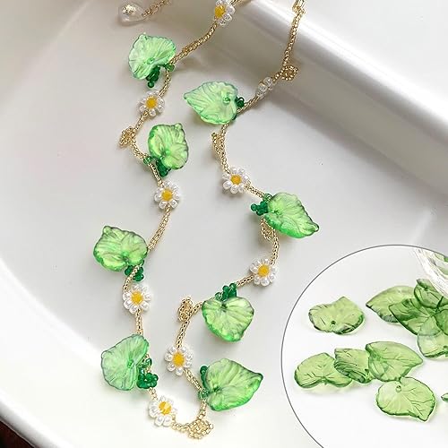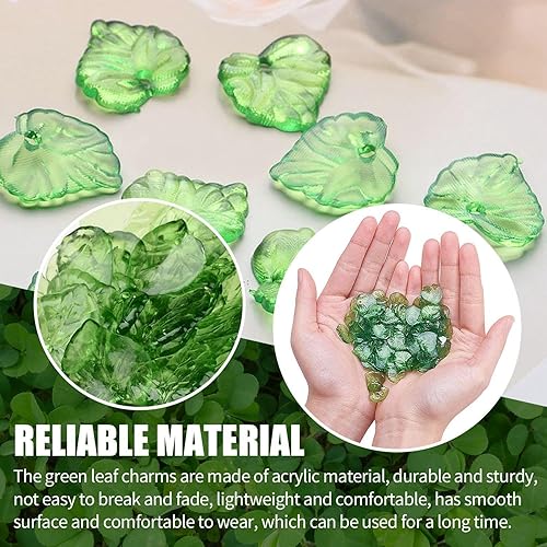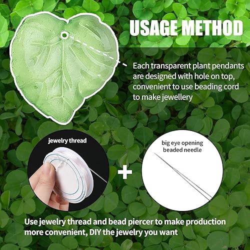 100 pendentifs feuille verte, 1 rouleau de cordon élastique, 1 enfile-perles, pendentif feuille verte suspendu, pendentif bijoux perles en vrac, produits décoratifs feuille verte