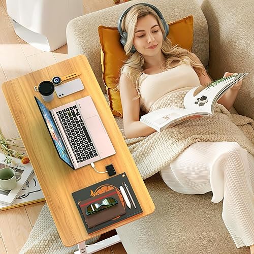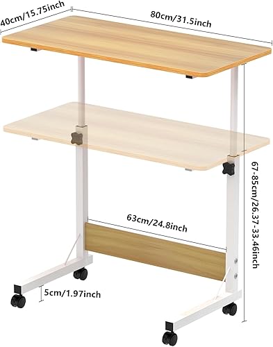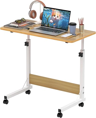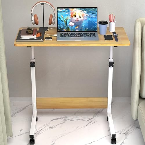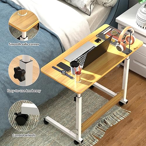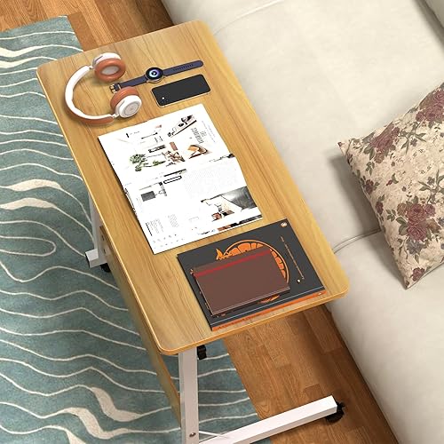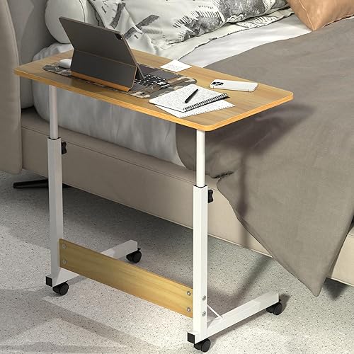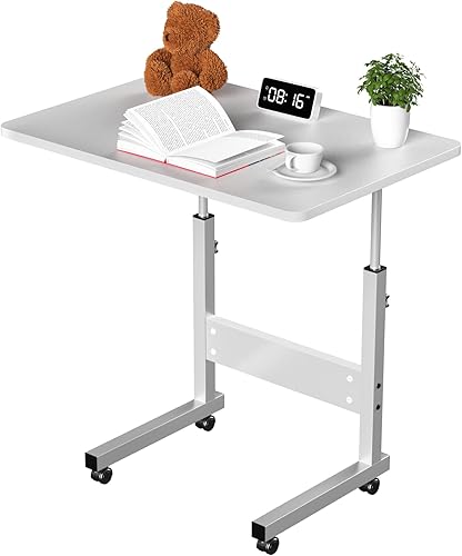 Table Roulante pour Lit, Table Appoint Canapé Bureau Réglable en Hauteur, Table de Lit A Roulette, Table D'ordinateur Mobile 4 Roulante Verrouillable, Bureau Debout Mobile 60x40x62-85cm (Blanc-A)