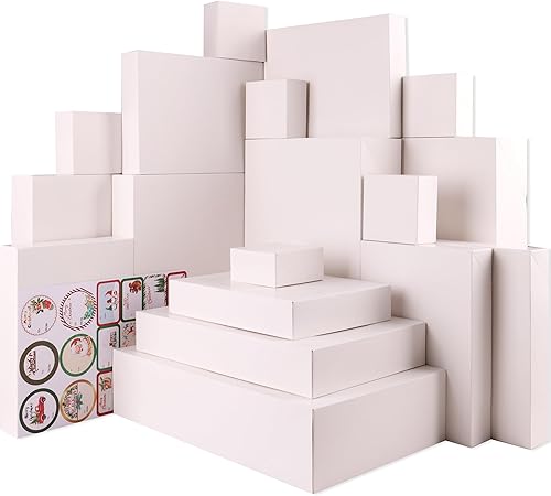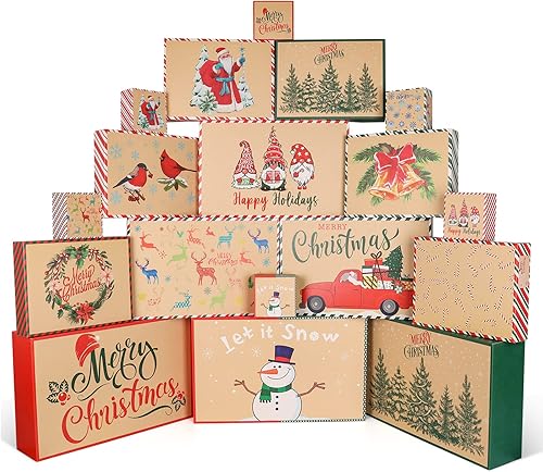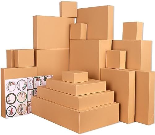 Boîtes Cadeaux en Kraft avec Couvercles Assortment-16 Pièces Lot de Boîte Emballage Cadeau de Noël pour Chemises, Boîte à Cadeaux avec Papier de Soie et Autocollant pour Anniversaire, Mariage